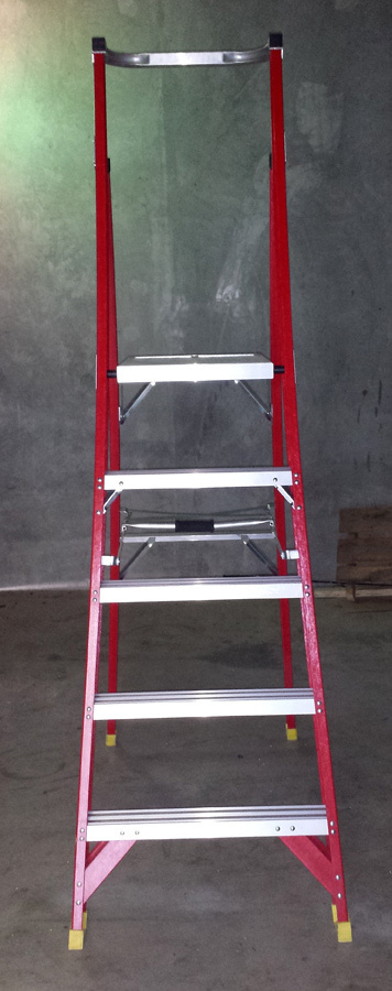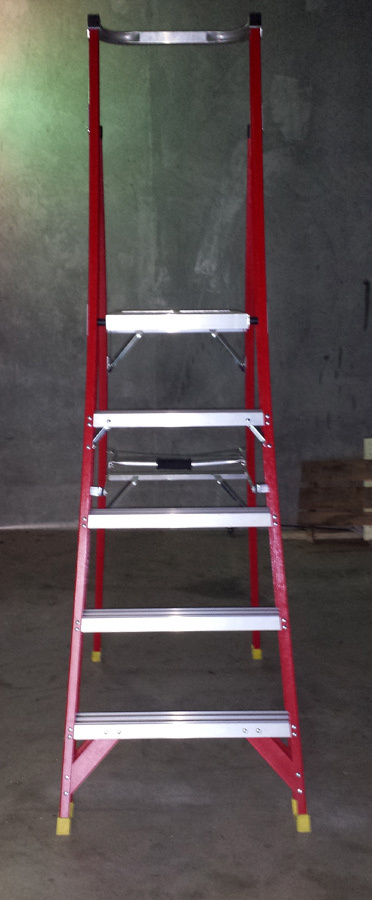 5 step platform ladder fibreglass with 150kg load rating with wheels.